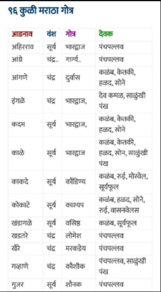 🚩🚩🚩 96 कुळी मराठा कुळे 🚩🚩🚩